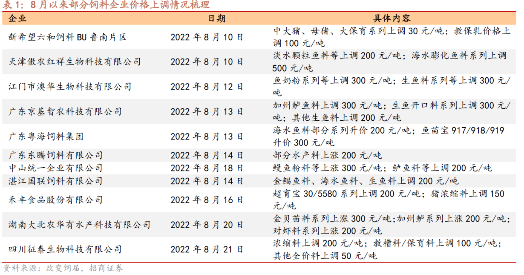 招商证券指出,由于持续高温,川内饲料企业采取错峰生产,日产量或出现一定程度下降;同时高温限电或导致上游豆粕等饲料原料供应不足,可能进一步抑制饲料生产能力。供给端的减少,使得饲料价格频频上涨。