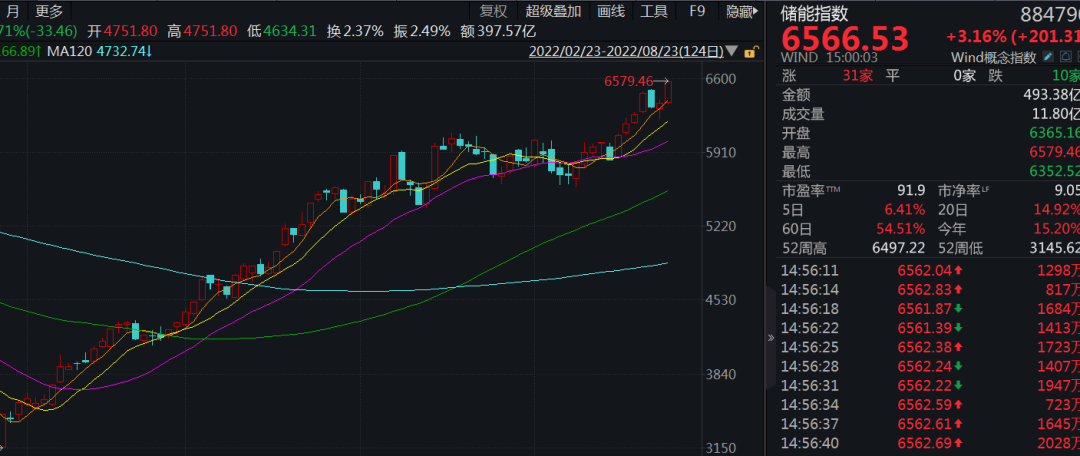 整体来看,市场现阶段更青睐逆变器题材的储能概念。比如市场上最大的储能龙头,宁德时代,反弹以来累计涨幅不足48%。该股去年储能系统营收高达136亿多元。另外,比亚迪、亿纬锂能等锂电行业龙头公司在储能方面也有深度布局。
