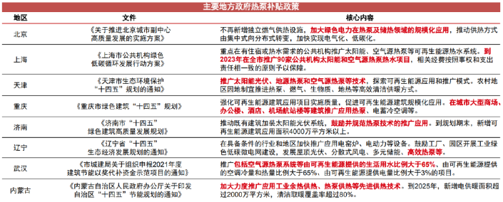 地方政府也密集出台政策,推动城市节能热泵建设。