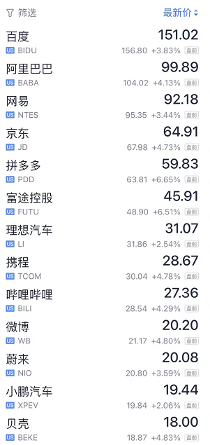 消息一出,A50立马拉升,中概股盘前纷纷大涨。不过投资者需要注意的风险是,中概股已经提前两天股价就有了表现反应。