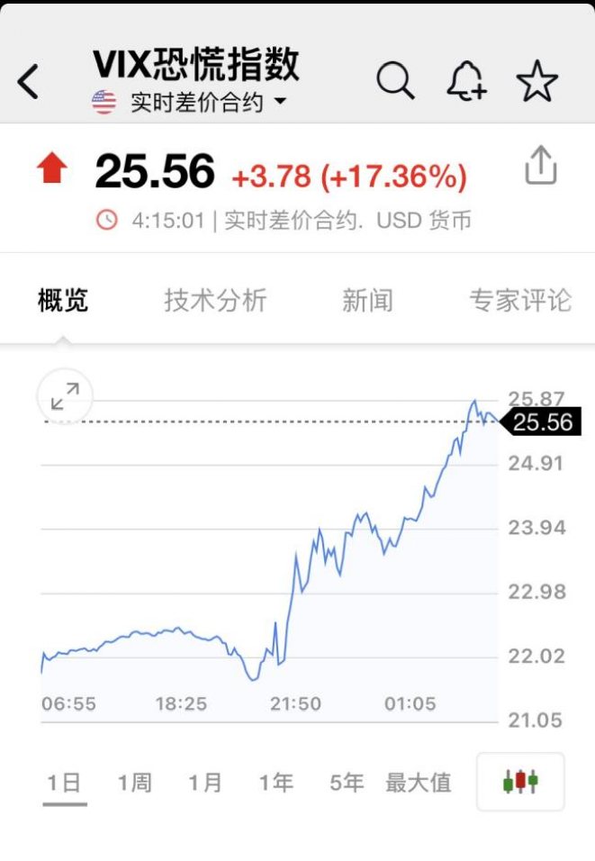 美股大类资产类ETF普遍收跌,纳指100 ETF跌4.10%,标普500 ETF跌3.38%,罗素2000指数ETF跌3.29%,道指ETF跌3.07%,标普500价值ETF跌2.72%,美国房地产ETF跌2.52%,做多美元指数和美国国债20年+ETF至多涨0.75%,农产品基金找那个1.27%。VIX恐慌指数飙升17.36%。