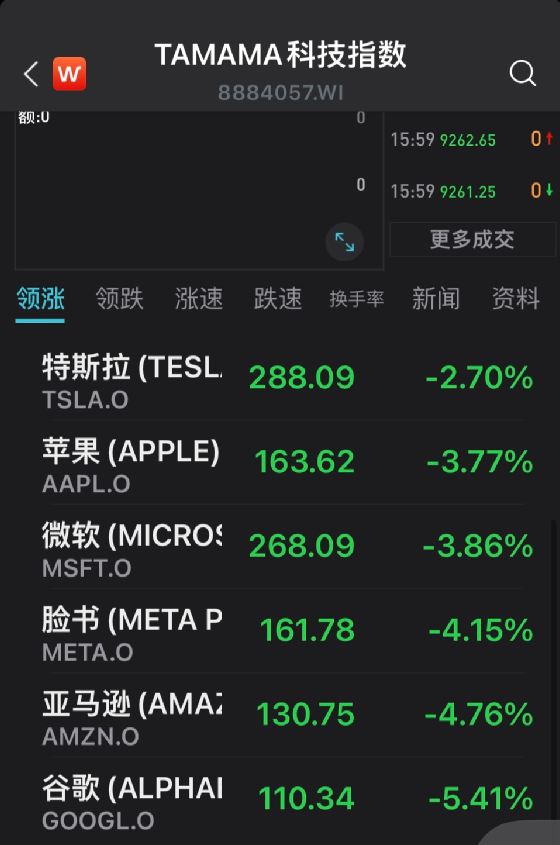 龙头科技股全线大跌