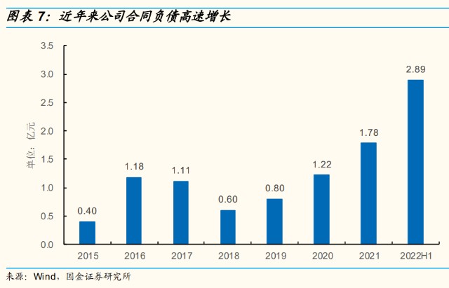 2022年一季度公司合同负债为2.89亿元,同比增长59.11%,合同负债的持续高增长,公司当前在手订单充裕,业务迅速发展,充分受益下游高景气,未来收入持续增长确定性较强。