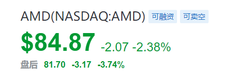 AMD股价盘后同样大跌。