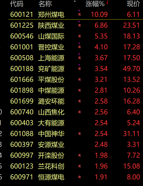 煤炭板块大幅反弹,陕西煤业盘中涨停,股价创历史新高,郑州煤电、山煤国际等纷纷大涨。