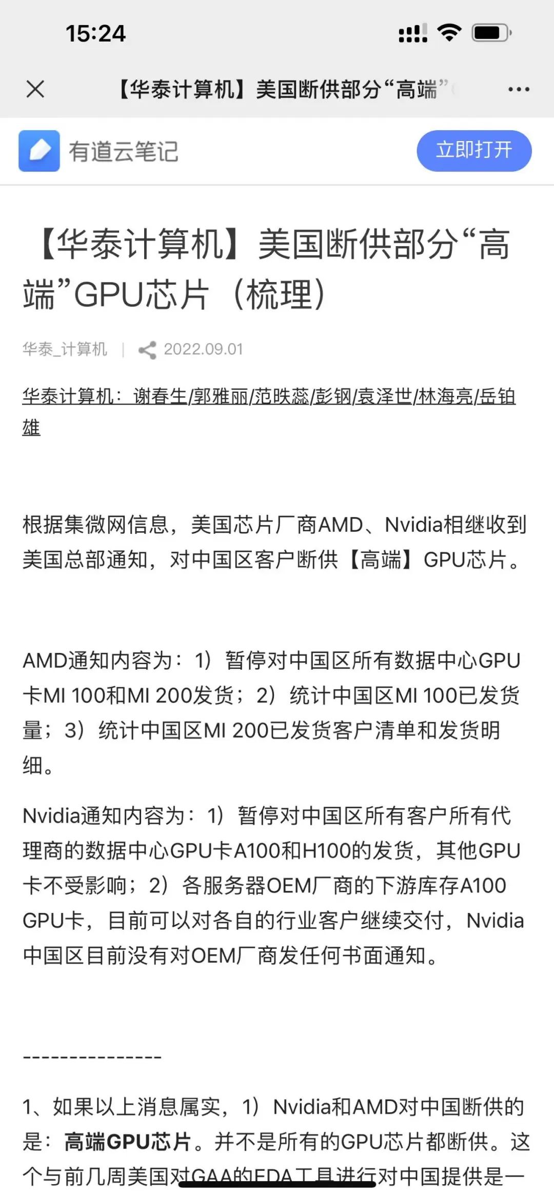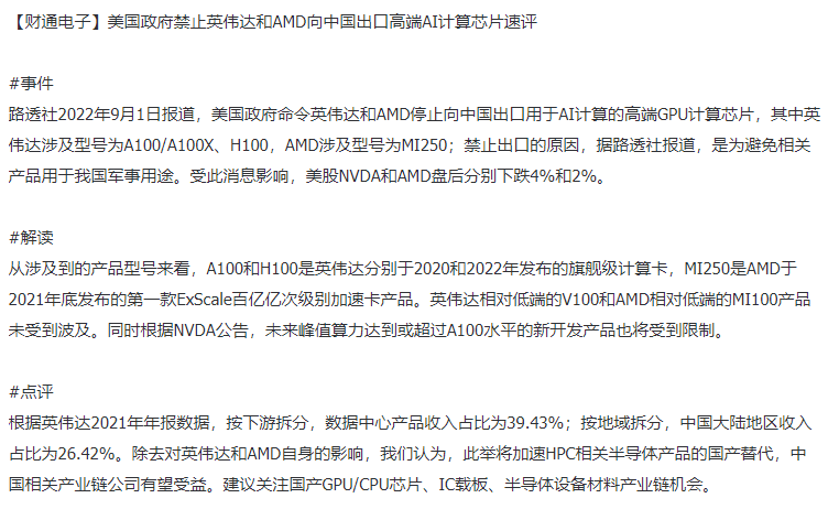 1. 我们向英伟达和AMD的中国代理商验证,得到回复还没有收到official notice,他们也是看新闻才知道