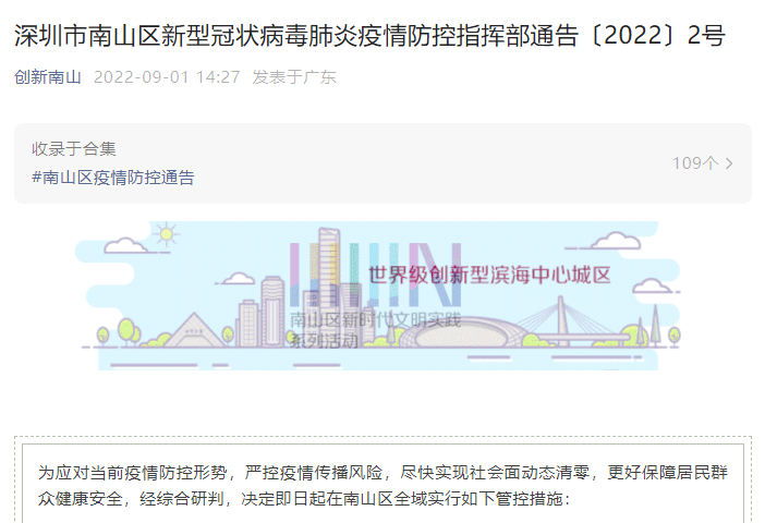 深圳南山区今起全域实行管控措施