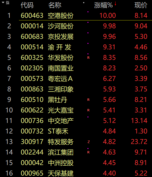 房地产板块逆市走强,京投发展2连板,空港股份、沙河股份涨停。