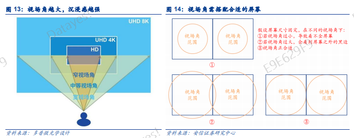 视觉方面,通过放大的显示屏技术,能够在用户眼前显示出一个放大的局部虚拟景象,目前显示视场角在介于90-110度,在这个显示范围内,实时渲染出3D图像。