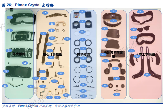 3.Pimax Crystal全拆解出来的5大组件共54块,大概都有什么?
