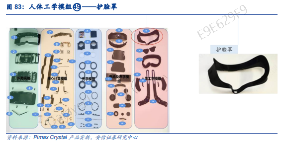 Pimax Crystal的人体工学模组则是由护脸罩、鼻贴、护脸罩海绵、左右齿条模组构成。