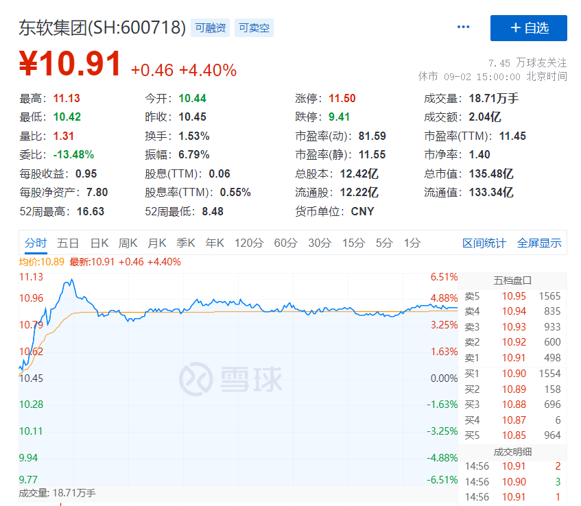另外,东软集团是A股上市公司,市值130多亿。