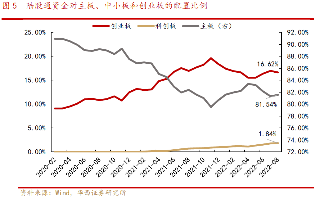 陆股通资金8月加仓主板(+0.25pct)和科创板(+0.08pct),减仓创业板(-0.33pct)。