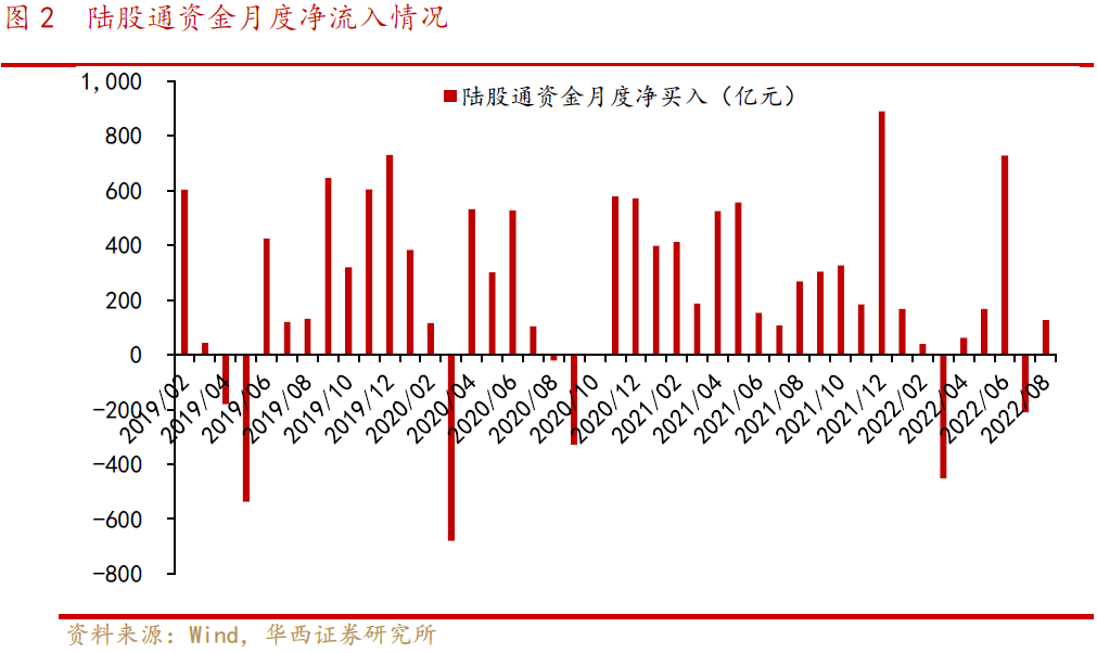 陆股通8月净流入127亿元,环比7月净流入增加338亿元。2022年1-8月,外资累计净流入634亿元,其中5-6月净流入898亿元,成为A股反弹行情中的重要增量资金。