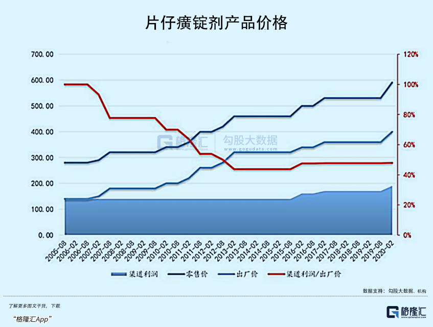 片仔癀虽然原材料价格持续上涨,但终端价格也在持续提升,锭剂出厂价从140元提升至了399元,提升185%,零售价从280元提升至590元,提升110%。
