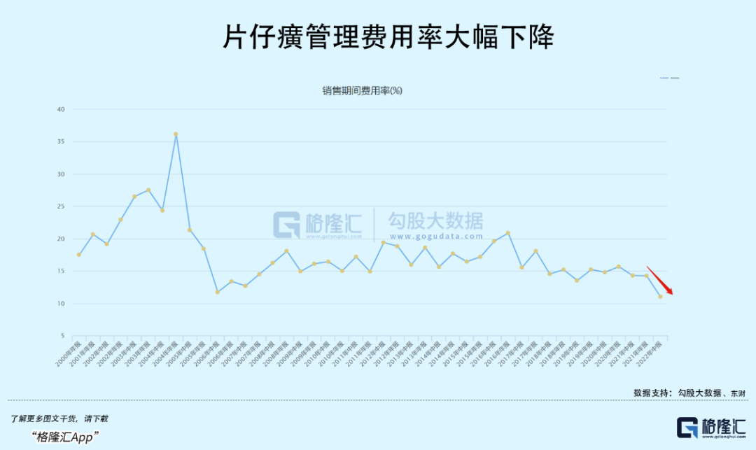 四费加总11.02%,较去年同期大幅下滑3.28个百分点。时间拉长看,现在费用率位于2003年上市以来最低水平。其中,管理费用率从2003年的14.68%下滑至最新的3.59%,销售费用率也有较大幅度的下滑。这大幅提升了公司的盈利能力。