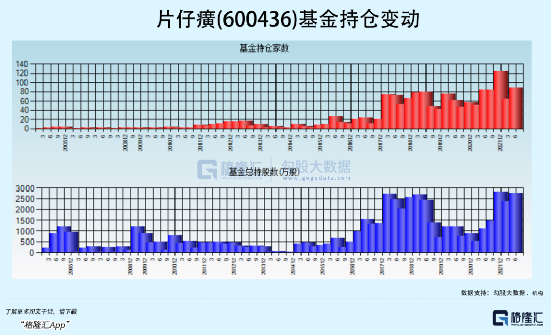 截止今年6月末,公募基金持有片仔癀2735.6万股,整体位于历史高位持仓水平。北向资金方面,最新持有市值53.33亿元,位列所有中药行业第1,位列整个生物医药行业第7名。可见,机构对片仔癀的态度整体还是良好的。