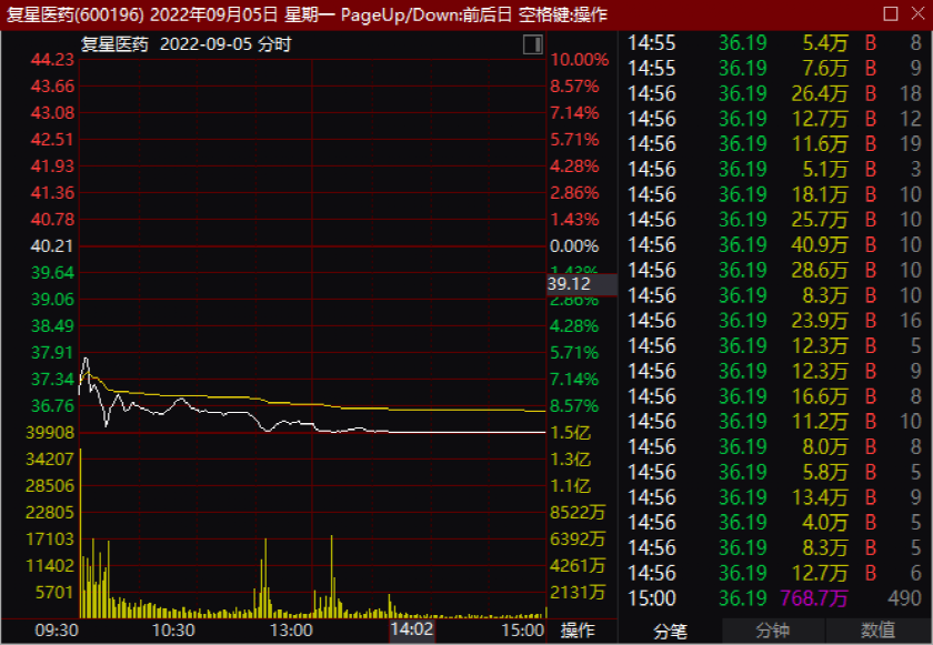 9月5日周一开盘。复星医药A股低开震荡走低,封死跌停。