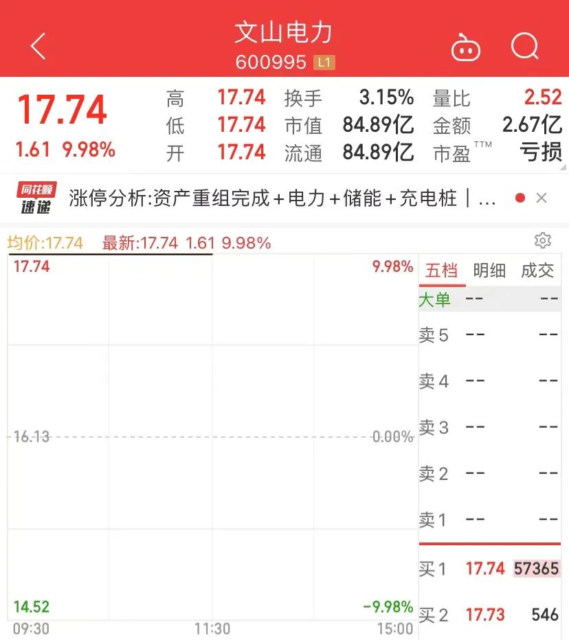 此前,文山电力已经因为储能概念,股价连续一字涨停,大幅拉升。