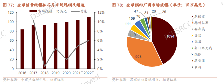 全球排名前五的信号链芯片生产商为亚德诺、德州仪器、安森美、美信、微芯,均是美国企业。可以说后两者尚无完全国产化能力。