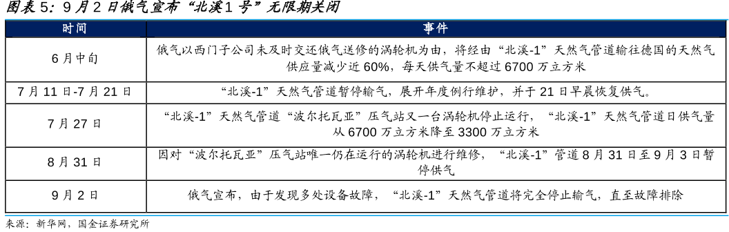 “北溪-1”暂停输气,后续恢复时间也具有不确定性,在一定程度上会影响欧洲天然气的供给。