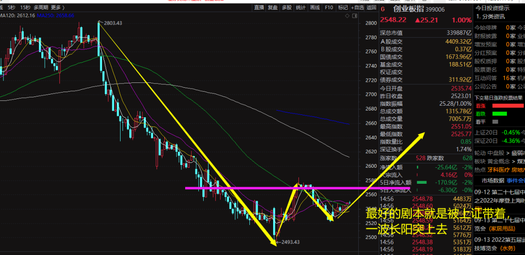 如果创业板节后一周内出现一波急杀,在急杀过程中带着上证指数往下,但是在创业板创新低的时候,上证没有新低,反而有比较强的抵抗,那么就可以认为短期底部到了。