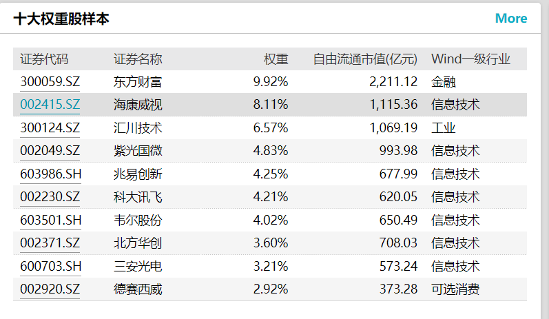 在其十大重仓股中,70%标的都与信息技术有关,其中,东方财富为国内稀缺互联网财富管理运营商,海康威视为安防行业龙头,也是A股AI龙头之一,其他标的也为各行业龙头企业,标的优良。