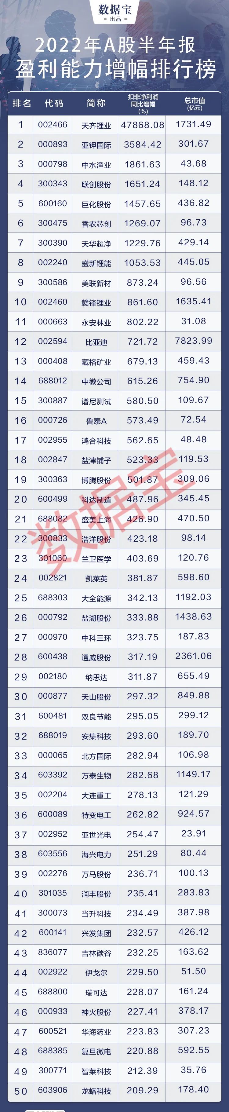 上市公司的盈利能力之间的对比,既要考虑其行业总体情况,也要考虑到上市公司本身的成长性。根据以下标准,以2022年半年报扣非净利润增幅为主指标,发布《2022年A股半年报盈利能力增幅排行榜》。