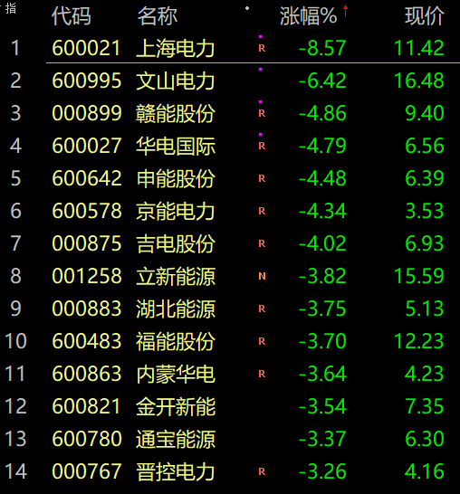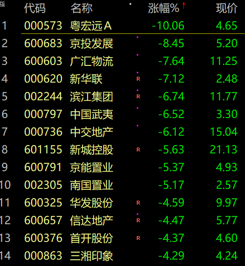 房地产、电力等跌幅居前