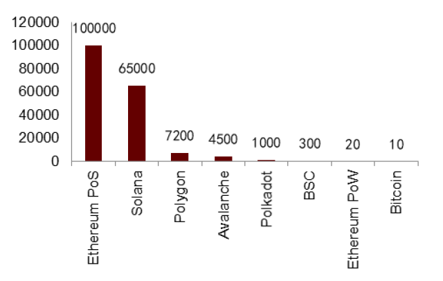 资料来源:Etderscan,Polygonscan,BSCscan,Solscan,defillama,中金公司研究部。注:TPS、总锁仓价值记录于2022年9月1日