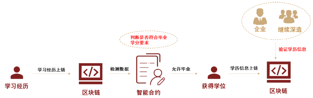 以学历认证为例。传统学历认证需要经过相关中介和大学等认证,效率较低,且拥有较高成本。假设未来我们可以提倡将学生的全部学习经历上链(每一门课程),符合相关标准的学生(比如必修课通过达到多少学分),可以即时通过智能合约自动验证相关员工在链上学历记录即可(可以做出一个不可交易的NFT),高效且可信。