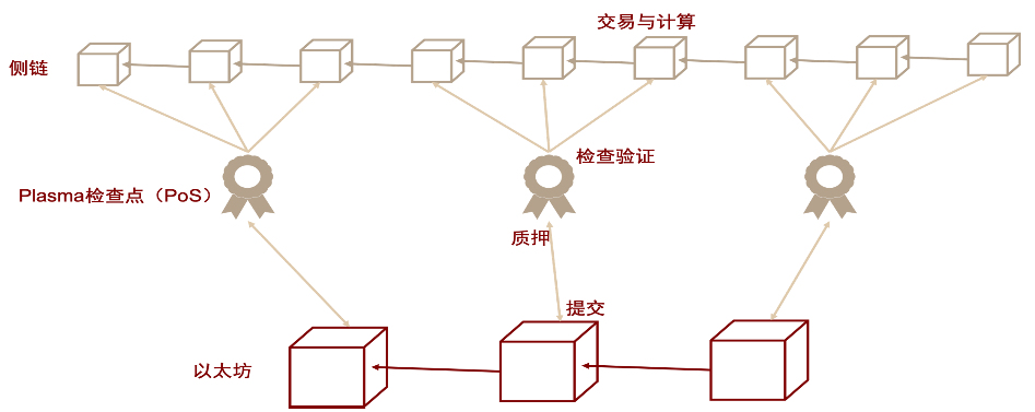 除了L2以外,另一种过渡性的解决方案是侧链(side chain)。侧链诞生的时间比L2要更早,其是独立的区块链,有自己的共识机制和安全属性,与以太坊(主链)兼容,典型案例为采用PoS的以太坊侧链Polygon。侧链给出的扩容思路是将主要的计算搬到另一条新区块链上,而将计算验证后的交易结果写入主链。这就在早期为NFT和GameFi(基于区块链的游戏)这种需要大量快速小额交易的需求提供了快速且较为安全的平台。
