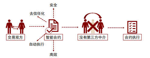 智能合约是区块链应用的执行代码,是开发者开发去中心化应用的脚手架。智能合约是位于以太坊区块链上一个特定地址的一系列可执行代码和数据,可以使用类似Java的solidity语言编写。代码在区块链上是公开透明、不可篡改的,任何人都可以检查,应用的日常运营均通过智能合约的代码自动强制执行。智能合约相当于从最底层将对复杂的“人和事”做了一次逻辑上的深度简化,打造出Web3.0生态简单而独特的信任机制——信任程序执行,不可篡改的程序执行操作是一视同仁的且公平公正的。