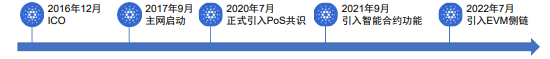 以太坊:生态领先,升级在即。以太坊(Etdereum)于2015年7月开始运行,是行业领先的公链。截至2022年9月,以太坊代币ETH总市值接近2000亿美元,仅次于比特币;以太坊生态应用数量接近3,000,智能合约数量接近5,000,均显著领先其他生态。但以太坊目前面临耗能较高、交易效率较低等问题,因此其致力于通过不断升级让整个生态更绿色,更安全,更高效。今年9月完成的The Merge升级的核心是从传统PoW转向PoS共识机制,降低以太坊的参与门槛,提升安全性。以太坊基金会预计合并后以太坊能耗将下降99.95%,后续The Surge升级将于2023年落地,有望通过分片和Rollup实现以太坊扩容,将以太坊每秒处理交易笔数从当下约15笔提升至10万笔,同时显著降低交易费用。
