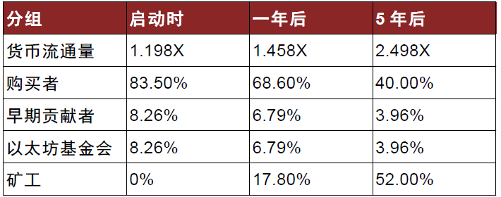 2014年以太坊众筹成功,ETH分配给投资人、贡献者和以太坊基金会,进入Frontier阶段。以太币ETH是以太坊上原生的加密货币,以太坊在2014年通过ICO众筹的方式募集到31,531个BTC,并出售了共6,000万个ETH。ETH早期贡献者还获得了相当于售出ETH总量9.9%的额外金额,另外9.9%则留给了以太坊基金会,创世时总共有1.198倍出售量的ETH流通。ETH是永续通胀的,在EIP-1559引入gas的销毁机制后,通胀率的增速被进一步控制,以更好适应以太坊生态的发展。