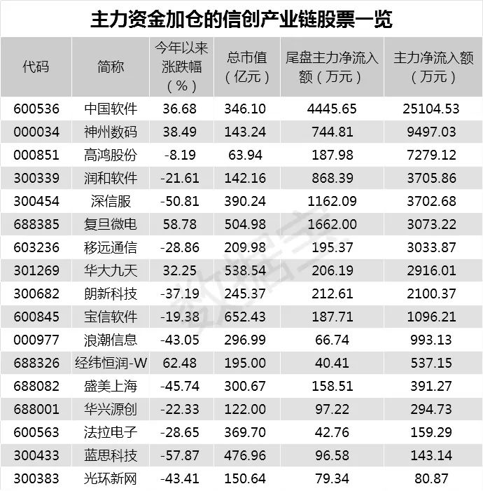 信创概念股盘点