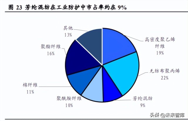 预计 2025年全球对位芳纶市场规模 37亿美元。受下游防护用品需求驱 动,以及新兴应用领域开拓,根据帝人的数据,预计到 2025 年全球芳纶 市场市场规模在 53 亿美元,约 350 亿人民币,CAGR 为 9.7%。根据 Reseach and market 预测,预计 2025 年全球芳纶中 70%为对位芳纶,则 对位芳纶市场空间达到 37 亿美元,参考油材讯数公众号数据,对位芳纶 为平均 14 万元/吨,间位芳纶 10 万元/吨测算,预计 2025 年对位芳纶以 及间位芳纶的需求量分别达到 18 万吨与 10 万吨。当前全球芳纶名义产 能约 14-15 万吨/年,其中对位芳纶需求约在 8-9 万吨,对应市场规模在 170 亿元左右。2018 年我国对位芳纶需求量约在 1.2 万吨,当前需求量 在 2 万吨左右。受地缘冲突对个人防护领域需求驱动,以及 5G 建设下 光缆需求拉动,预计未来数年国内对位芳纶需求有望超过 3 万吨。