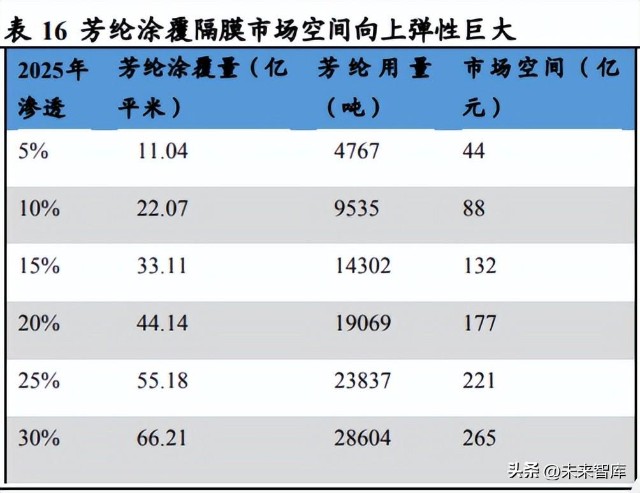 3.4. 芳纶锂电池涂覆材料从 0 到 1 向上空间弹性大