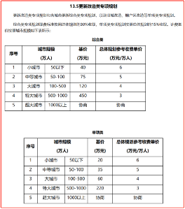 图:2017修订《城乡规划设计计费指导意见》中规划费用参考单价