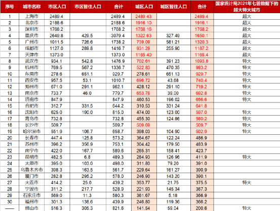 口径一:根据住建部住建部2021年城乡建设统计年鉴,若严格按照常驻人口划分,则超大+特大城市只有12个,若包含暂住人口广义来看,则包含19个。