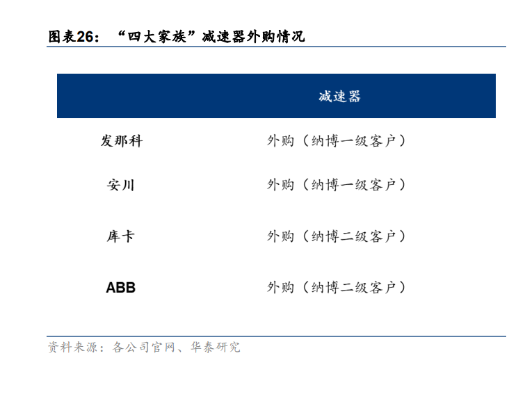 工业机器人企业减速器自产程度较低,大多采取外购。减速器市场集中程度较高,据哈工 大 2021 年发布的《中国机器人产业发展报告》,日本哈默纳科、纳博特斯克和住友占据了 85%的份额,其中纳博特斯克是 RV 减速器的发明者,占据全球工业机器人减速器市场的 60%,并在以及数控机床自动换刀(ATC)装置的 RV 减速器市场占比 80%,工业机器人 四大家族减速器自产能力较弱,均外购纳博特斯克的减速器。日本哈默纳科是全球最早研 发生产谐波减速器的企业,减速器市场占比第二位 15%。