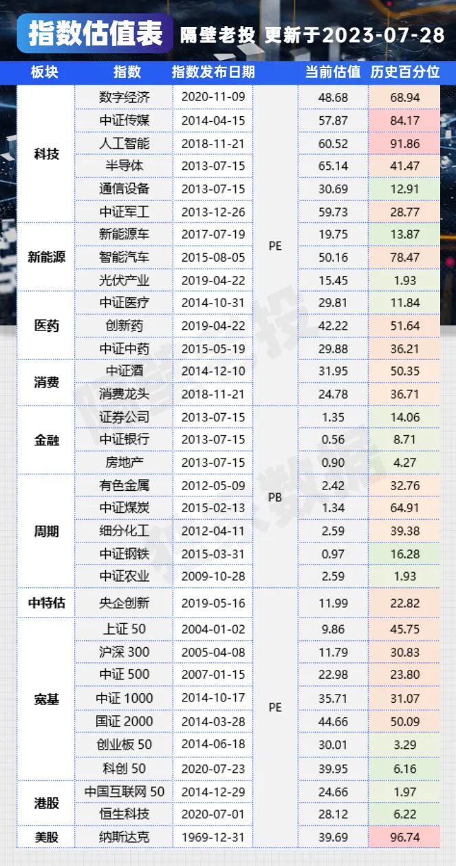 参考须知:估值百分位用红、橙、绿三种颜色表示高估值、中等估值、低估值。参考数据为该指数发布以来的所有历史数据,有的长达十年以上,有的只有几年。估值百分位的参考价值仅限于中长期投资,对短线投资无效。