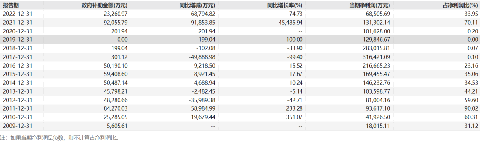 另据2023年半年报披露,计入三安光电当期损益的政府补助共计7.75亿元,其占净利润的比重,从2021年的70%,回落至2022年的34%,进而又飙升至2023年上半年的456%。
