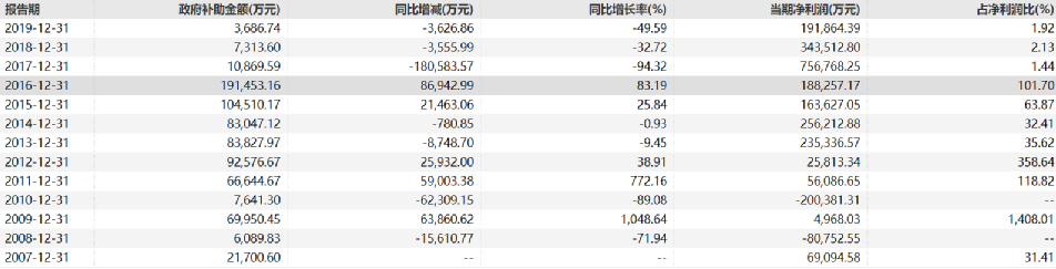 从京东方的情况来看,直到大幅盈利前夜的2016年,其政府补助依然达19亿元之多,占净利润的比重达102%。只是在2017年大幅盈利之后,其政府补助才大幅下降,占净利润的比重跌至1-2个百分点,直到2020年没有政府补助。