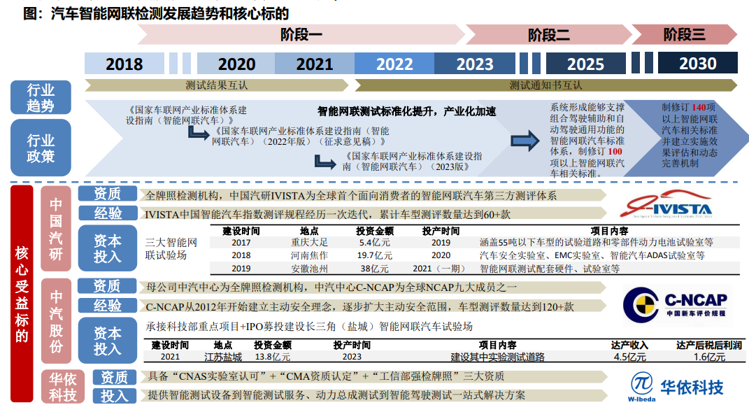 另外,不同于L2级别自动驾驶时期(2023年以前),L3法规落地(预期)有望推动新车智能化检验从非强制走向强制,具备“资质-经验-场地”的第三方检测机构或承担新车智能网联能力检测的主要责任。