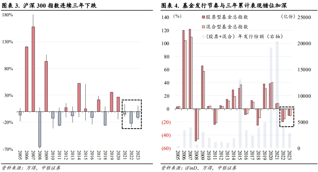 行业错配源于基金发行生态、节奏与行业表现错配。行情的差异化、结构性表现与此前基金重仓行业的错配,是2023年机构所谓底仓行业溃退的根源。就表观原因而言,行业主题型基金的发展过快,占比过重,从挂钩考核指数的层面而言,一方面导致基金仓位系统性维持高位,在行情走弱背景下,整体高仓位形成掣肘,另一方面导致了在重仓行业表现乏力背景下的转身难。