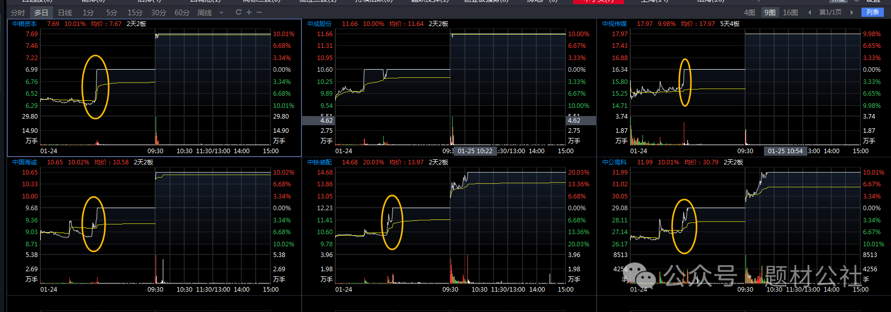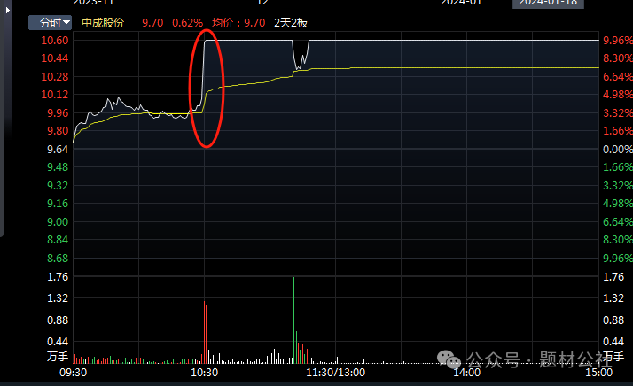 然后当时中字头股票第一次异动,中成股份率先涨停: