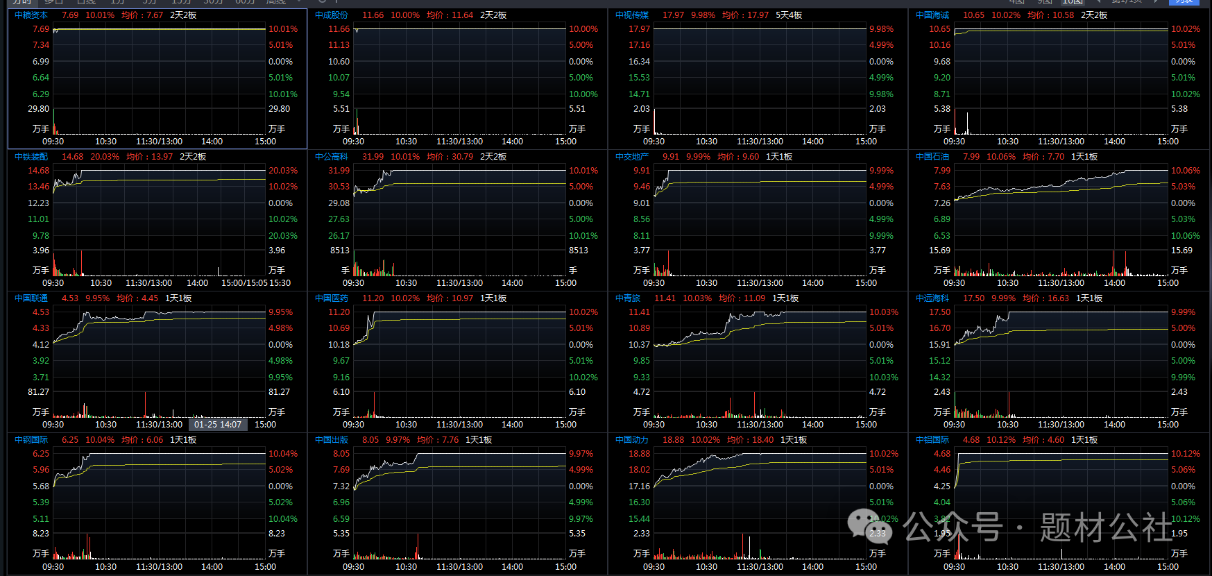 随后到11:30分收盘前,中字头第一批涨停个股爆发