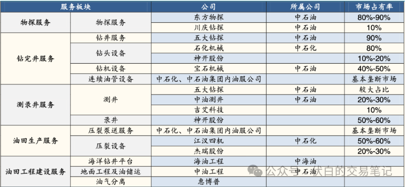 石化油服:中石化旗下,油田技术综合服务提供商。业务包括钻井、测录井、井下作业、工程建设。