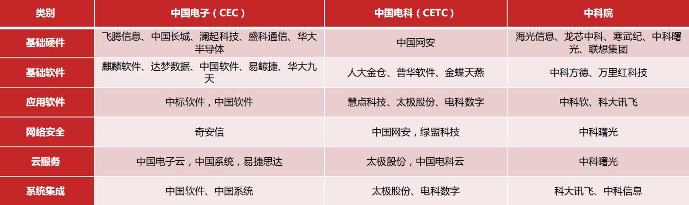 我国目前科技型央国企集团主要包括中国电子、中国电科、中科院、航天科工集团、航天科技集团等。